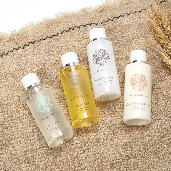 Welcome your hotel guests to 5-star luxury with our premium toiletries set, featuring a fragrance crafted with care for a memorable experience.